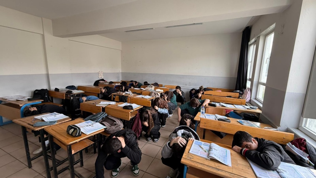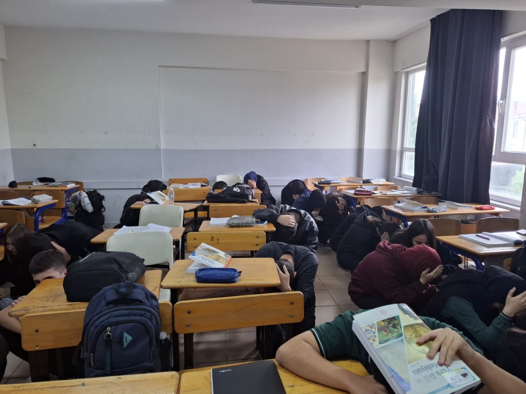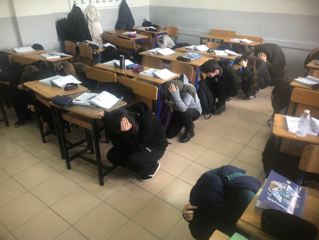 Öğrenciler sınıfta bulundukları esnada tatbikat gerçekleştirildi. Deprem anında yapılması gereken adımlar çerçevesinde ÇÖK-KAPAN-TUTUN hareketini uygulayarak hedef küçülten öğretmen ve öğrenciler sarsıntı sona erdikten sonra ilk olarak sınıftan sonra da okuldan güvenli bir şekilde önceden belirlenen tahliye güzergâhında, öncelik ve sınıf sırasına göre tek sıra halinde toplanma alanında toplandı. Toplanma alanında öğrencilere bilgilendirme yapılarak tatbikat tamamlandı.